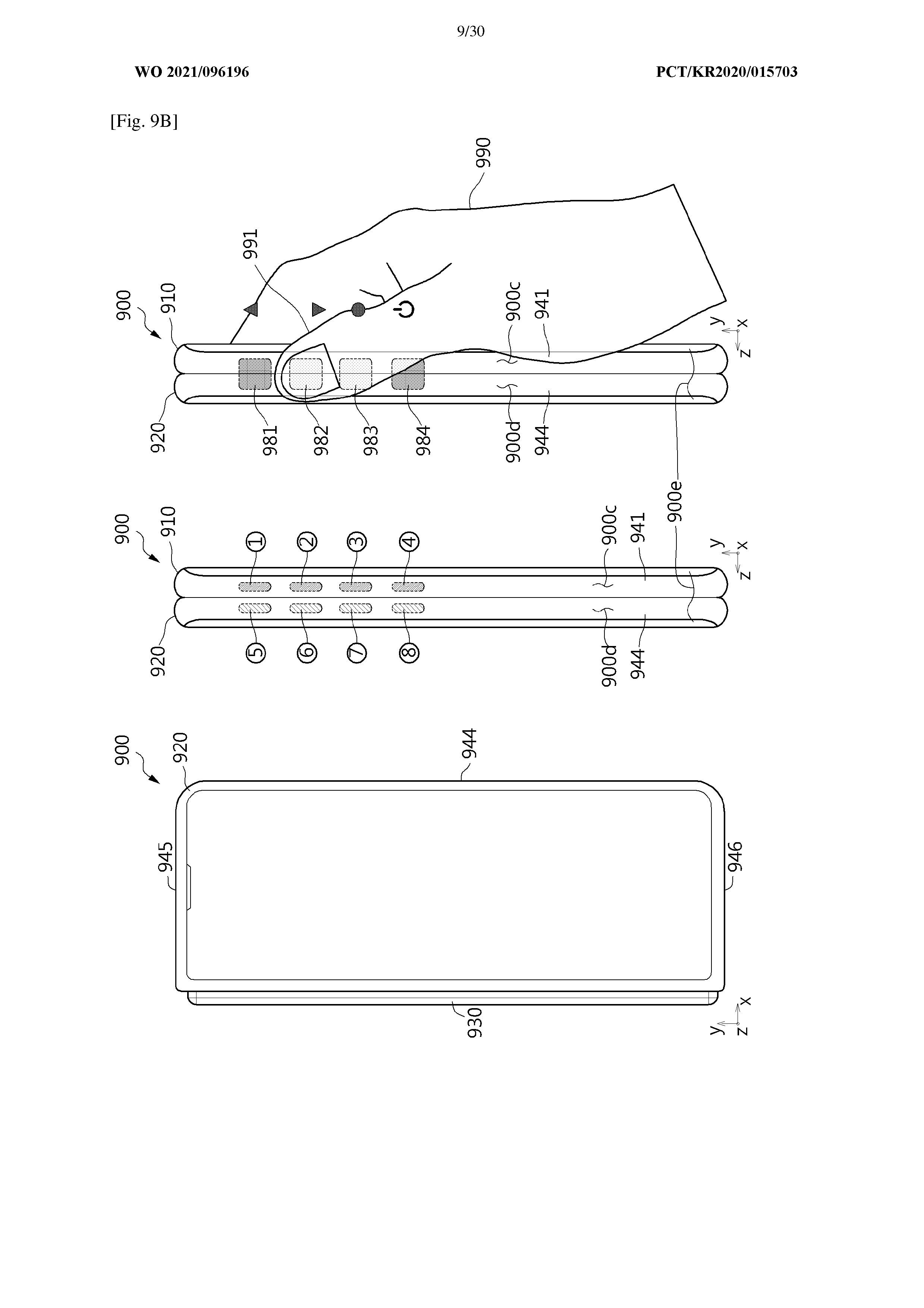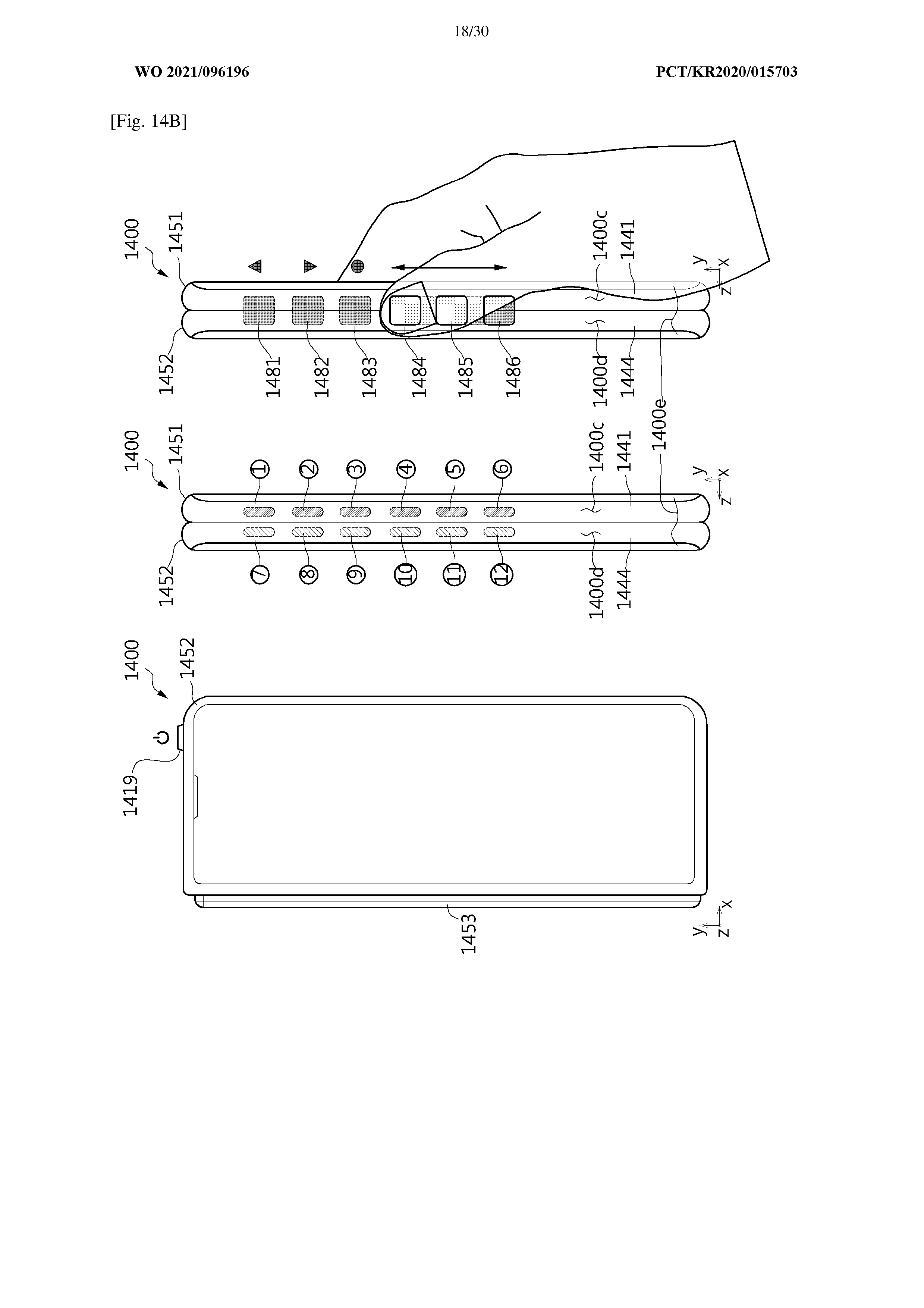According to the patent’s description, physical buttons on a bar-type foldable device like the Galaxy Fold can be troublesome to the user. Additionally, pressing physical keys and applying force on one side of the housing could cause damage to the hinge. in order to solve this problem, the patent imagines a Galaxy Fold-like device with touch-based virtual buttons instead of physical keys.