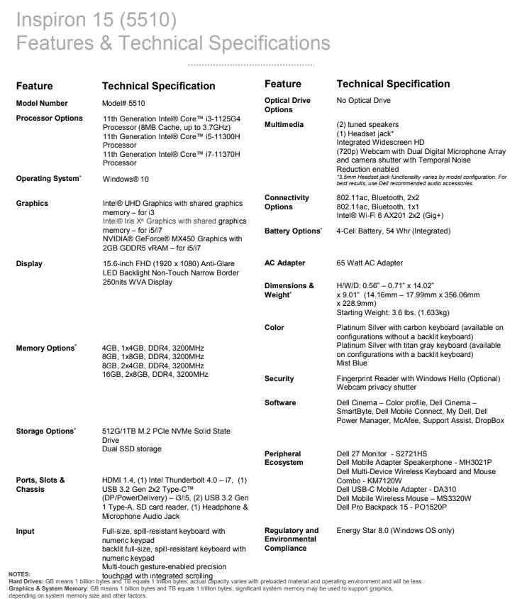 Dell Inspiron 15 specifications