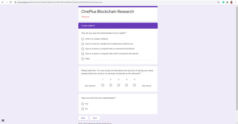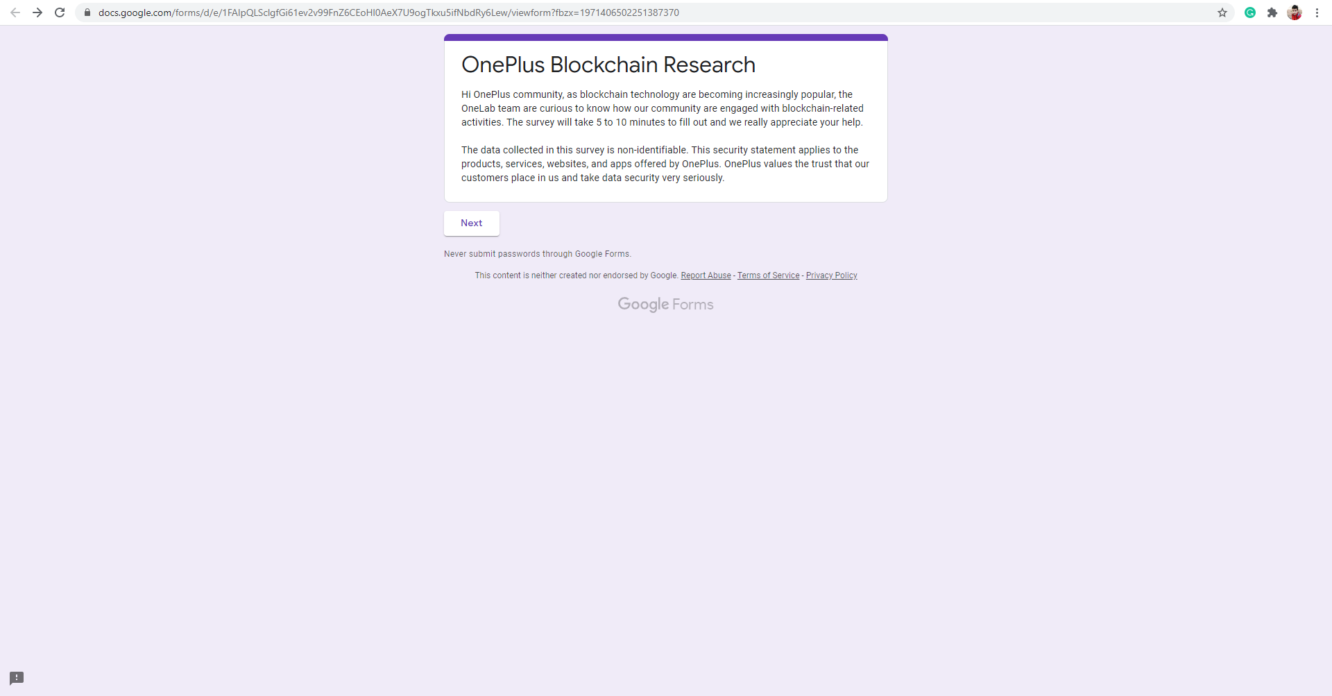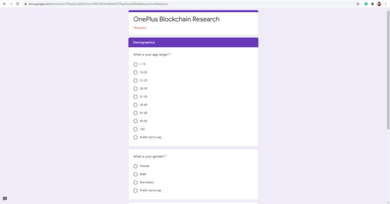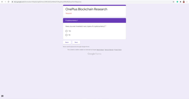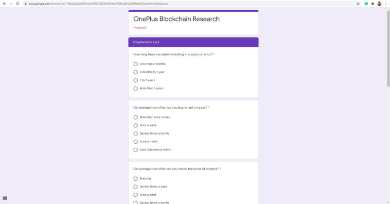 On Tuesday, MySmartPrice spotted that OnePlus is conducting a survey through Google Docs, asking people questions about blockchain technology. The description for the survey reads “Hi OnePlus community, as blockchain technology are becoming increasingly popular, the OneLab team are curious to know how our community is engaged with blockchain-related activities. The survey will take 5 to 10 minutes to fill out and we really appreciate your help“.