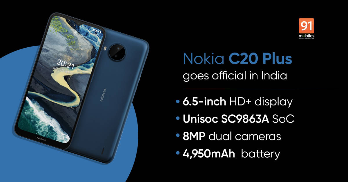 The post Nokia C20 Plus launched in India with a 6.5-inch display, 4,950mAh battery: price, specifications first appeared on 91mobiles.com.