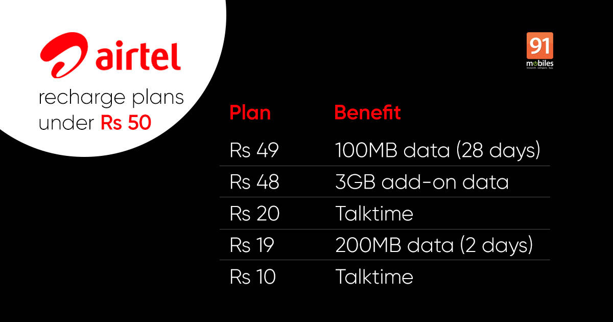 The post These Airtel recharge plans under Rs 50 offer data and talktime benefits first appeared on 91mobiles.com.