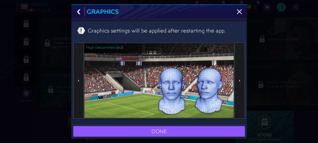 Much like Asphalt 9, Fifa Mobile doesn’t offer a lot of graphics customisation, to begin with. That said, buyers looking to play the title on their Snapdragon 778G-backed phone can run the game at the ‘High’ graphics preset. In fact, the game defaults to the ‘High’ graphics setting from the get-go, which is great.