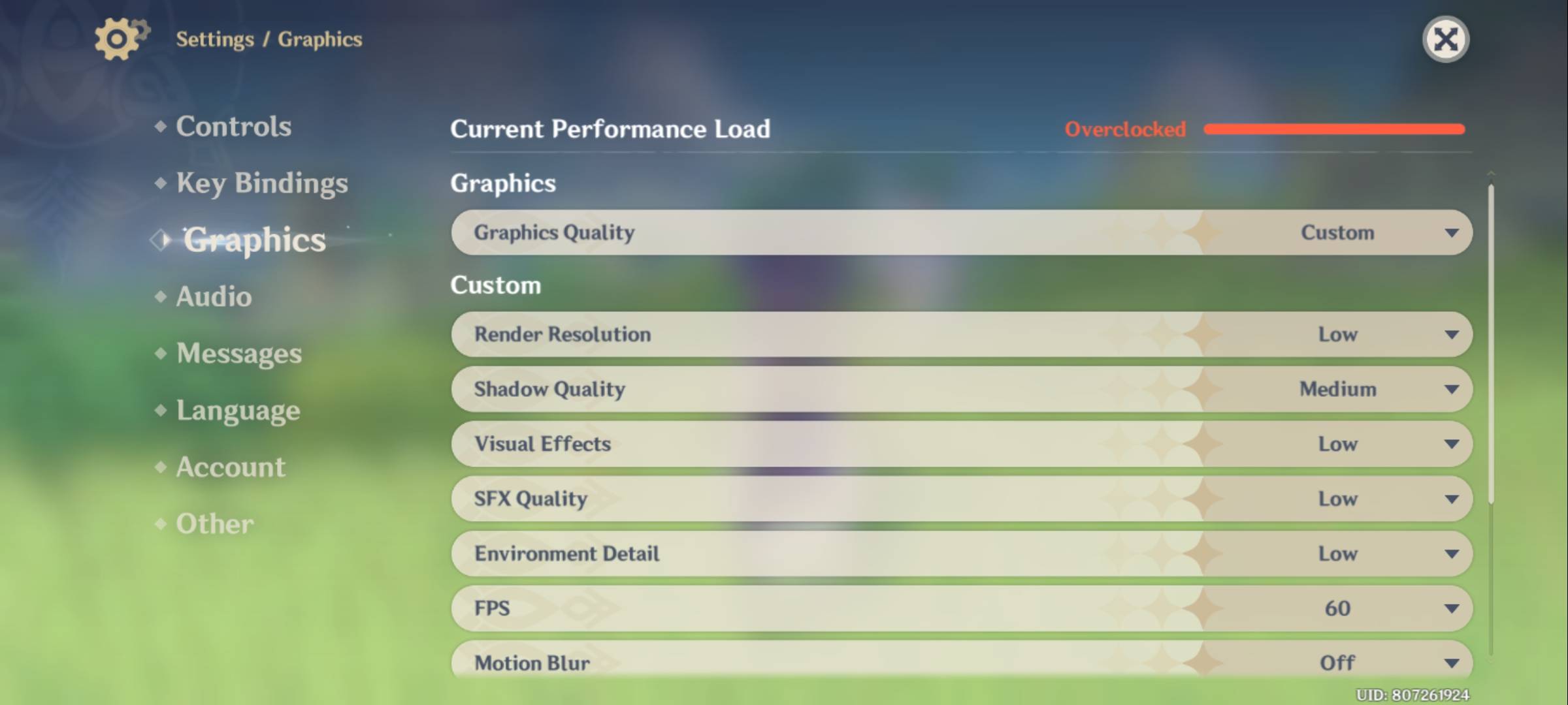 | Genshin Impact | Low (graphics) + 60 (FPS) |