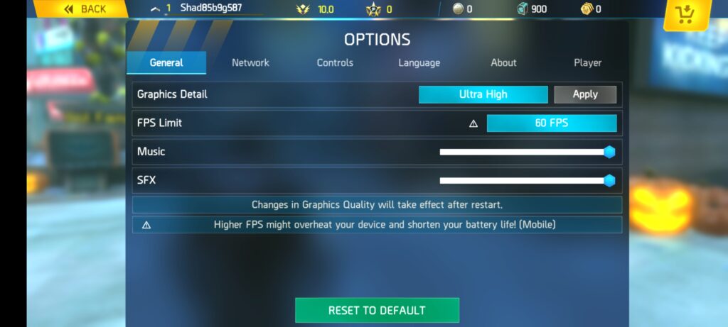 | Garena Free Fire Max | Ultra (graphics) + High (FPS) |