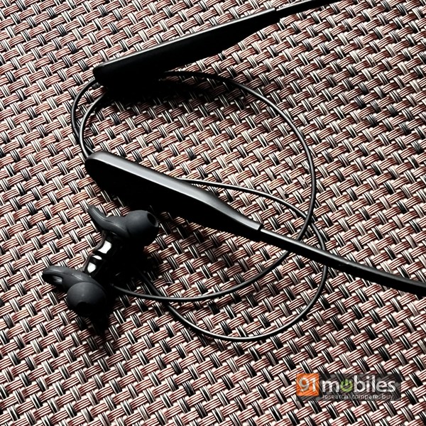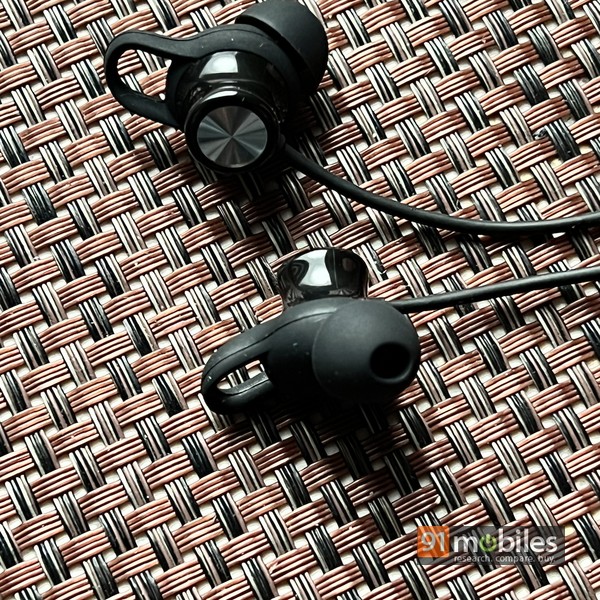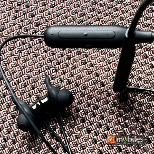 On the left side of the neckband, the plastic cylinder sports volume controls, a multifunction key and a USB Type-C port which is covered with a flap. A charging cable is included in the box. It’s worth mentioning that the magnets employed in the buds aren’t very strong, and they can come apart on their own sometimes. This can occur while they’re around your neck, but there are more chances of this happening and the device switching on inadvertently whilst stored in a bag or purse.