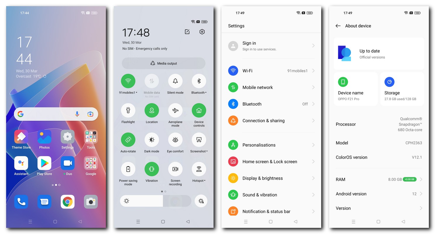 Display-wise the OPPO F21 Pro ships with a high-quality 6.4-inch, FHD+, AMOLED panel that refreshes at 90Hz. The screen features a tiny punch-hole notch towards the top left-hand side which blends in quite effortlessly too. That’s not all, as the display gets plenty bright and offers a peak luminescence of about 800nits, making the screen fairly legible, even in sunny conditions. Now, per the brand, the smartphone can relay HDR10 content and the device supports WideVine L1 certification too. However, try as I might, I couldn’t download the Netflix app on the phone. That’s quite surprising, given how I could seamlessly download apps of other OTT services like Hotstar and Amazon Prime on the phone. I did reach out to the brand and I’ll update the review once I have any more insights to share. Additionally, the phone’s 90Hz refresh rate rarely misses a beat and the display renders buttery smooth animations, provided you’re not taxing the device with a resource-hungry task.