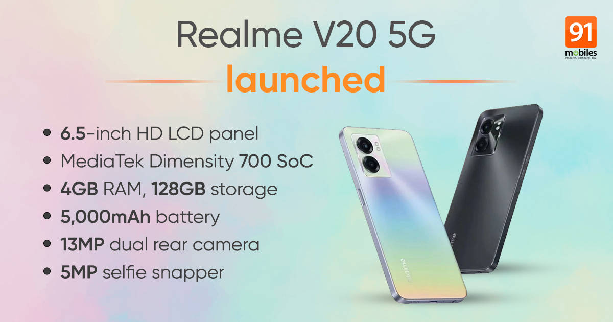 Realme V20 5G with MediaTek Dimensity 700 chip, 5000mAh launched: price, specifications