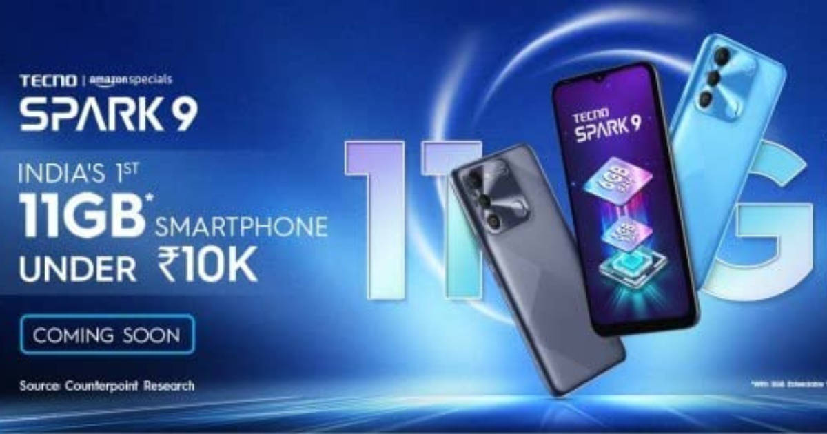 Tecno will expand its Spark lineup with the addition of the Tecno Spark 9. The company has officially announced the launch date of the upcoming Tecno smartphone on Twitter. A microsite of the Tecno Spark 9 is live on Amazon, revealing design, specifications, and Amazon availability. Further, the listing also reveals that the Tecno Spark 9 will be the first smartphone to come with 11GB RAM under the Rs 10,000 price range.