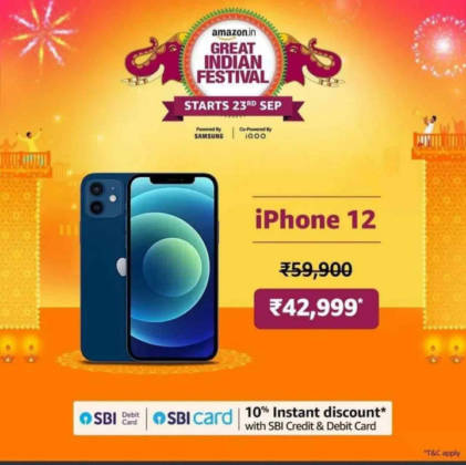 As a part of the upcoming Great Indian Festival sale, Amazon is teasing the iPhone 12 price to be Rs 42,999. This is a great price for the phone and it is still worth buying compared to its Android counterparts. In addition to the price discount, there will be an SBI card bank offer as well, which should bring the price down to Rs 39,999.