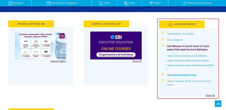 - Under the Announcements section, select Aadhaar linking for all SBI customers