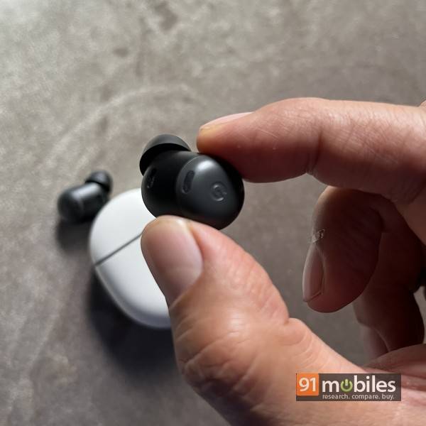 Speaking of, the fit is great right out of the box, at least for me. You see, while the exterior of the buds looks very similar to the A-Series and can be had in a variety of colours, the Pixel Buds Pro feature an elongated, tube-like design and angled tips that fit very nicely into the ear canal, with more stability added by the rubber tips. Not just that, they’re extremely comfortable too and can be worn for long periods without any issues.