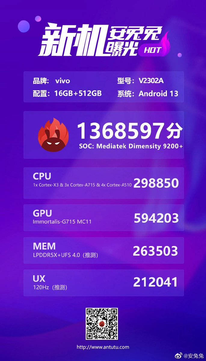 - The AnTuTu listing for the alleged iQOO Neo 8 Pro (model number Vivo V2302A) confirms that the device will be powered by an octa-core MediaTek Dimensity 9200+ processor, which will be coupled with up to 16GB RAM and up to 512GB internal storage.