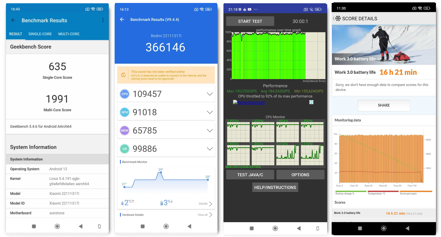 On the other hand, the Redmi Note 12 5G is powered by the Qualcomm Snapdragon 4 Gen 1 SoC, which is also fabricated on the 6nm process. The handset features up to 6GB LPDDR4X RAM and 128GB of UFS2.2 internal storage, expandable via a microSD card. During our tests, the Note 12 5G scored 366,146 points on the AnTuTu benchmark test and 635 and 1,991 points on the Geekbench single-core and multi-core tests, respectively.