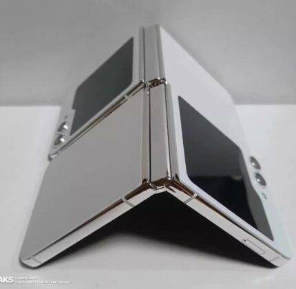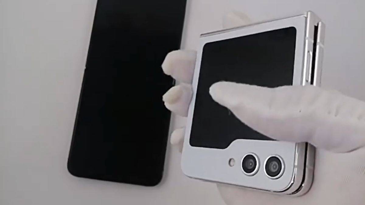 The leaked video shared by Slash Leaks shows the Galaxy Z Flip 5 in white colour with a gold frame. There are dual selfie cameras sitting just below the cover display. On the inside, there’s a punch-hole selfie camera that’s sitting at the top centre of the display. The USB Type-C port and speaker grille are located at the bottom.