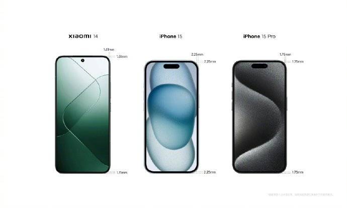 - Display: From the official renders and promotional images shared by Xiaomi CEO Lei Jun on Weibo, we know Xiaomi 14 has a 6.36-inch screen with extremely thin bezels of about 1.61mm on the top and around 1.71mm on the bottom. These are thinner than what we have on the iPhone 15 and iPhone 15 Pro.