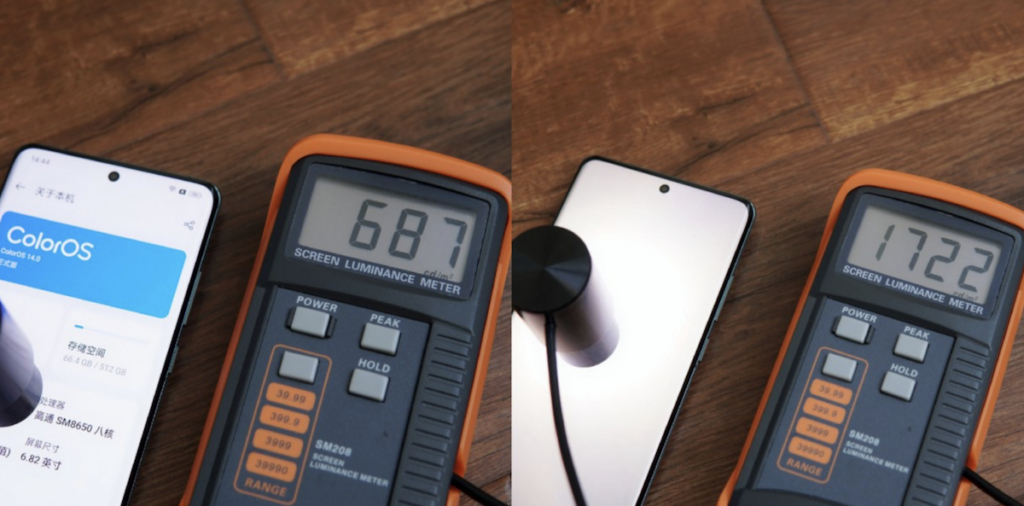 One of the leaked hands-on images shows that the OnePlus 12 supports up to QHD+ (3168×1440) resolution. Another image shows the display brightness going as high as 1722 nits through the manual slider. The phone can deliver up to 4,500 nits through auto mode under peak sunlight.