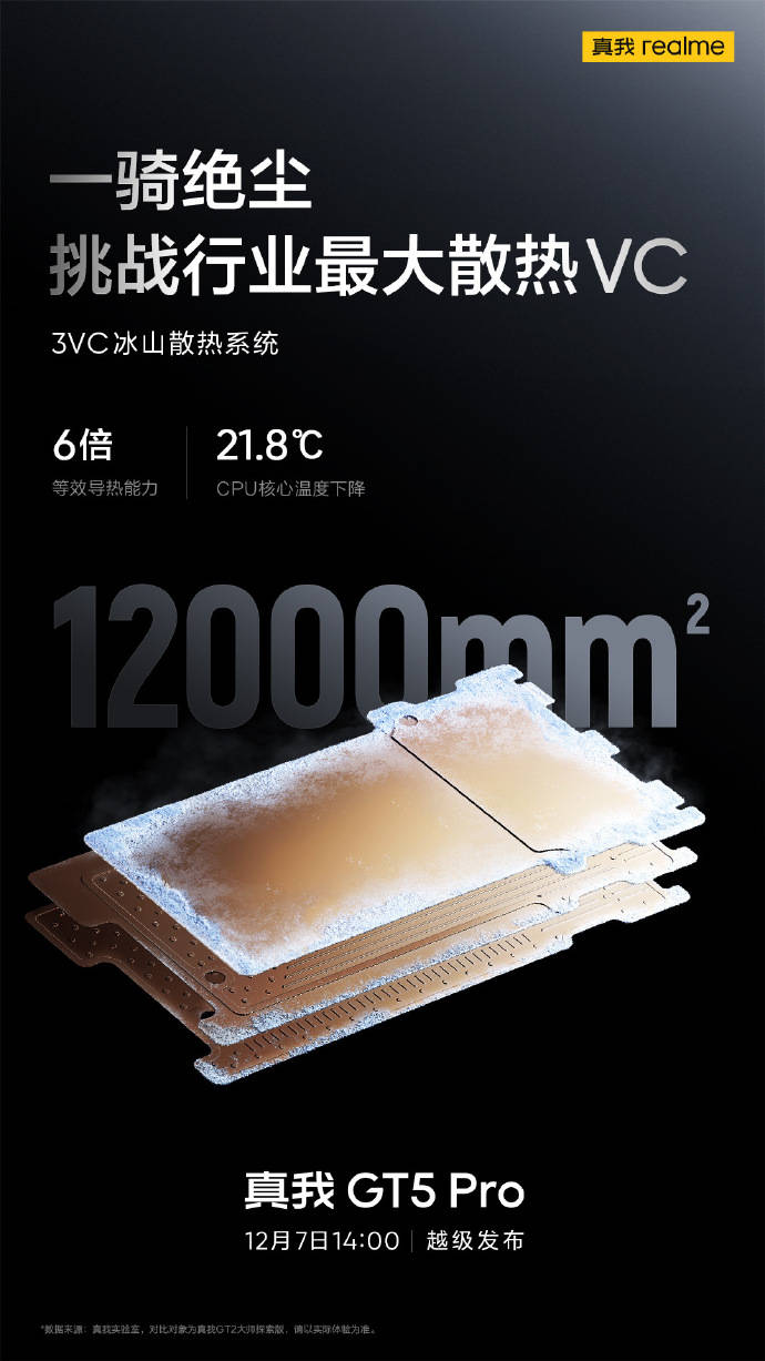 - Heat dissipation: Realme has shared the device will be armed with a 3VC iceberg cooling system, with a 12,000mm² vapour chamber cooling. This is larger than the thermal solution within some of the best gaming phones out there. The company notes that this vapour chamber can help in quelling the CPU temps by up to 21.8°. It is said to have 6x higher thermal conductivity than its Snapdragon 8 Gen 3-powered competitors.