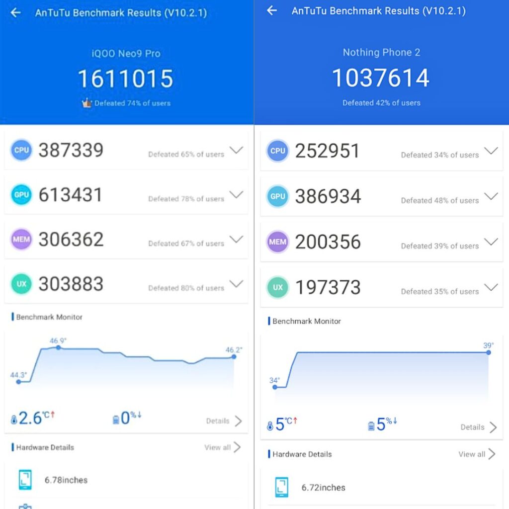 iQOO Neo 9 Pro vs Nothing Phone (2) performance comparison: which affordable flagship performs better?