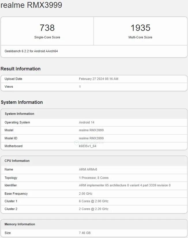 - Realme 12 5G with model number RMX3999 has landed on Geekbench 6.
