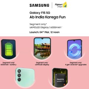 - As far as key features are concerned, the Flipkart Samsung Galaxy F15 5G reveals that this Samsung phone will feature sAMOLED display.