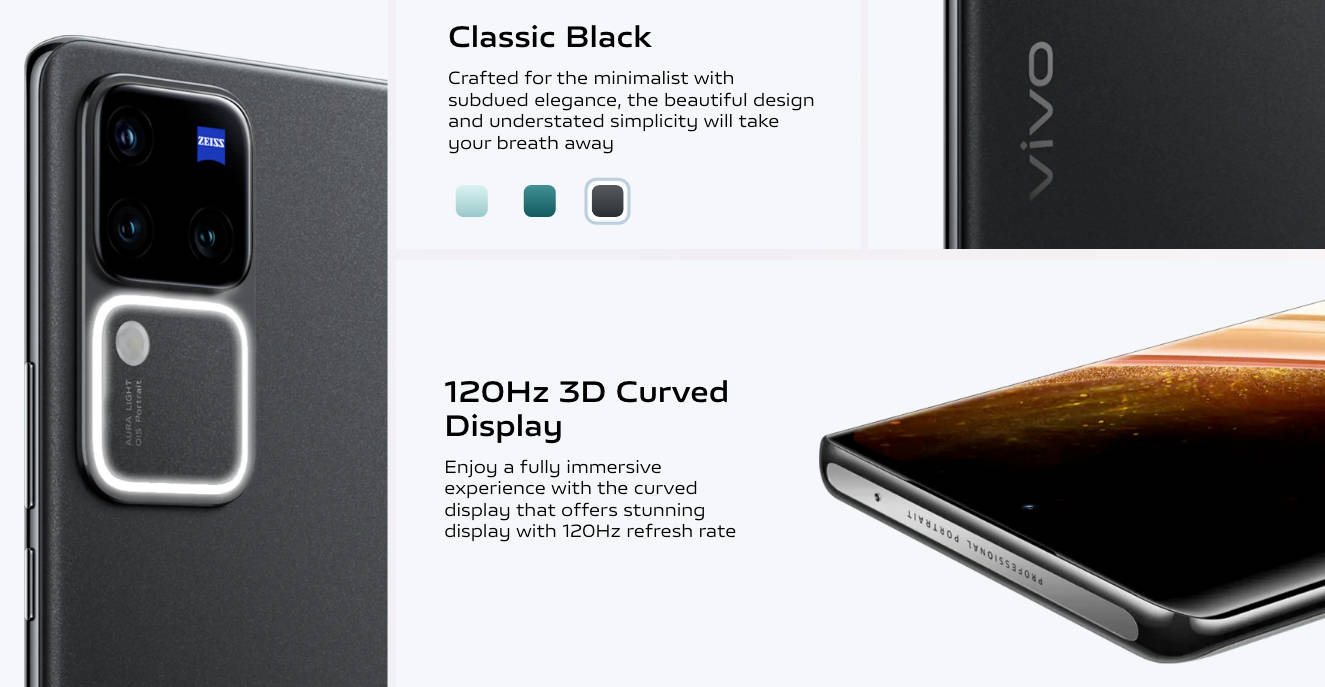 We also see the Vivo V30 Pro’s triple rear camera panel and the Aura Light OIS Portrait.