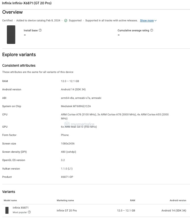 Infinix GT 20 Pro specifications spotted on Google Play Console: MediaTek Dimensity 8200 SoC, 12GB RAM, and more
