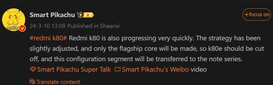 - The tipster added that Xiaomi follows a different strategy with the Redmi K80 series. This time it will focus only on the flagship models, and not on the mid-range models. So the Redmi K80 series might not include the Redmi K80e model.