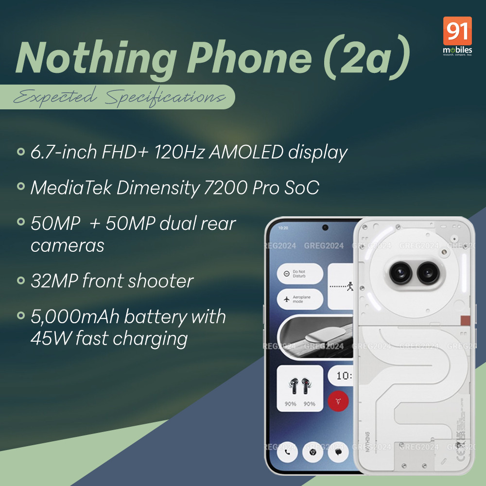 - Display: The Nothing Phone (2a) could feature a 6.7-inch FHD+ OLED display with a 120Hz refresh rate.