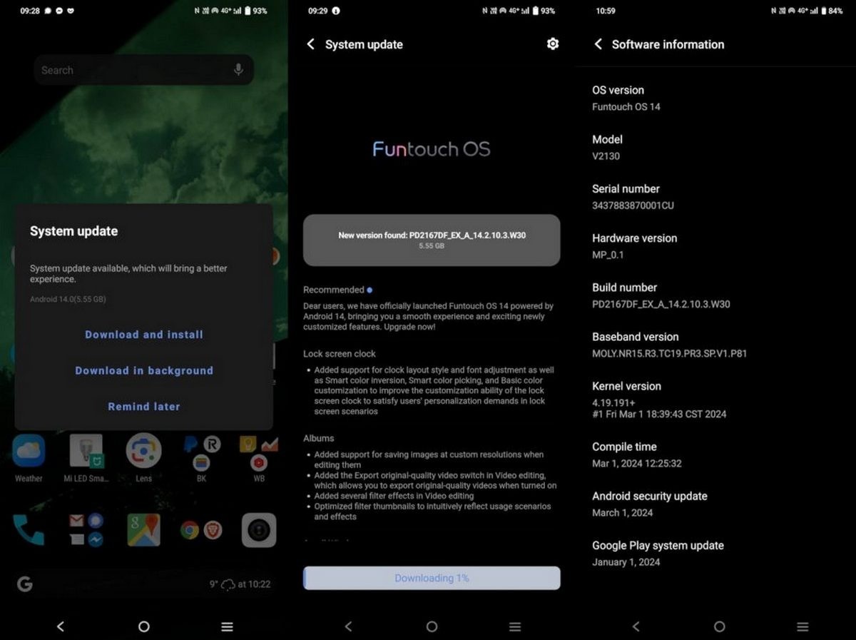 The update (via) is available for download over-the-air and weighs in at a hefty 5.5GB. The V23 5G will be updated to version PD2167DF_EX_A_14.2.10.3.W30, along with the installation of the March 1st, 2024 security patch, upon completion.