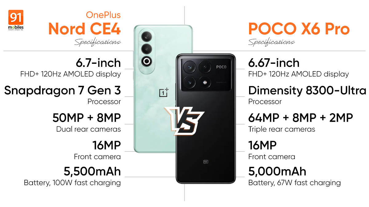 The post Comparing OnePlus Nord CE4 and POCO X6 Pro: does the new OnePlus phone offer better specs? first appeared on 91mobiles.com.