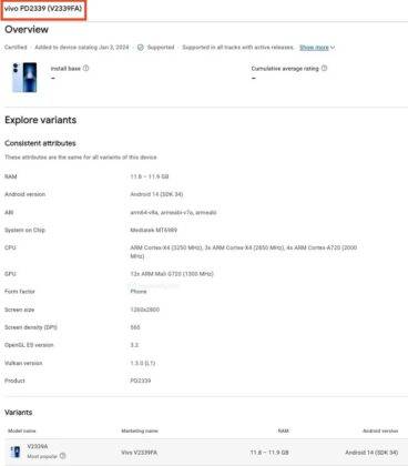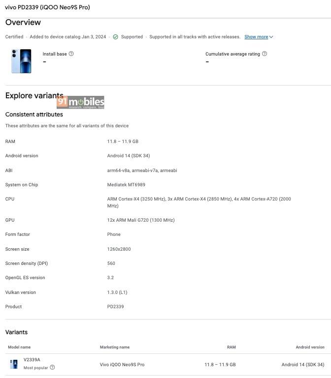 - In the latest Google Play Console appearance (spotted by MySmartPrice), the phone’s marketing name, i.e., iQOO Neo 9S Pro is not present. Instead, we just see its model number V2339FA.