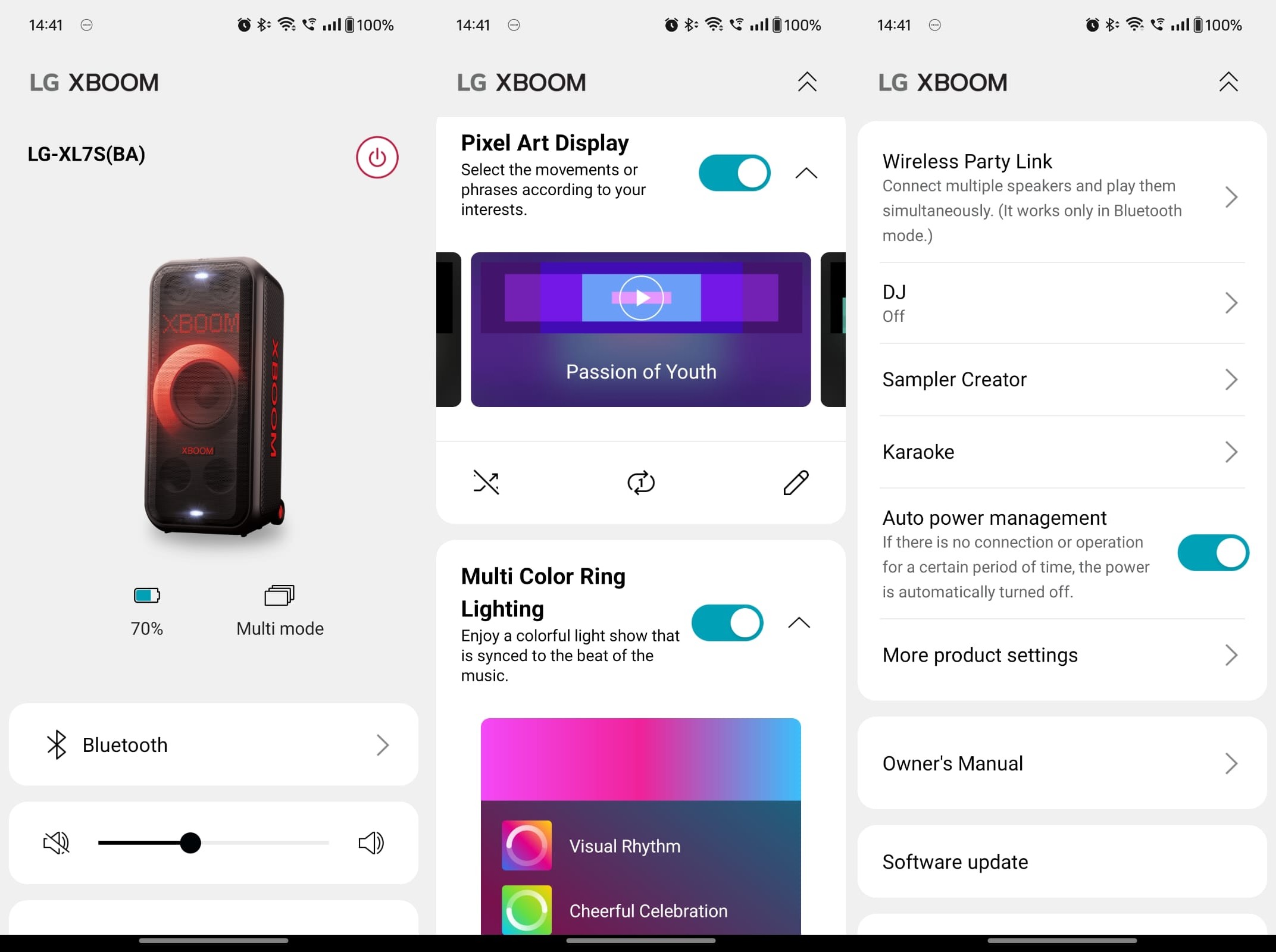 The companion app for the XL7S, aptly named the LG XBOOM app, is available on the Google Play Store and the App Store for devices running Android and iOS respectively. While the app has received mixed reviews on the app marketplace, my personal experience with it was largely positive. All functions operated smoothly on the app. Moreover, the XBOOM app is intuitively designed and offers a range of features beyond controlling the Pixel Art Display and multi-colour ring lighting. You can adjust the EQ settings between Standard and Sound Boost or customise it using three bands: 100Hz, 1kHz, and 10kHz, according to your preference. While I didn’t have a mic to test the Karaoke mode within the app, I spent considerable time with the DJ mode, which comes with turntable scratch sounds and drum sample hits. Additionally, the XBOOM app helps you keep track of the speaker’s battery.