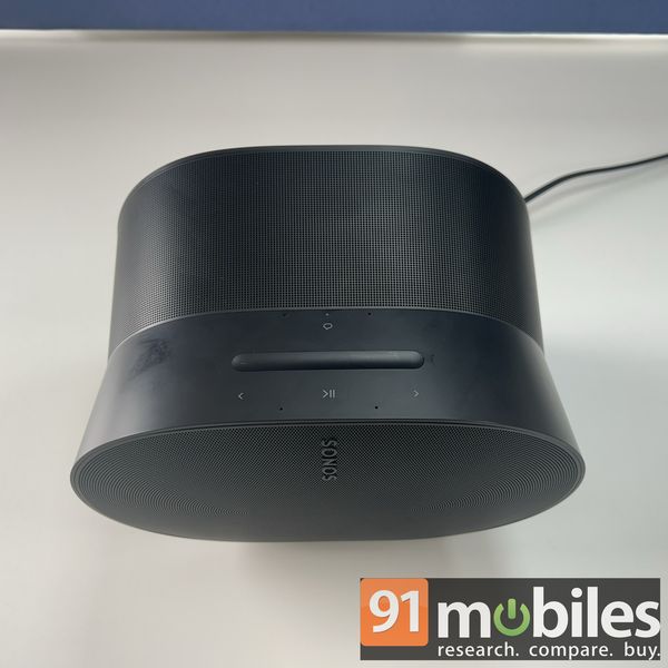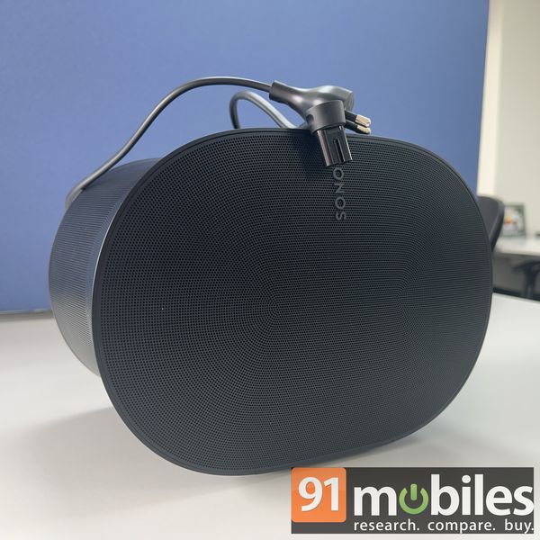The Sonos speaker is fashioned out of plastic and comes in two colour variants: white and black. We received the black variant for review, which looks well built. The front end of the speaker has a slightly curved grille with the Sonos branding, covering ‘Custom waveguides’, which promise to deliver an expansive soundstage and a centre-aligned tweeter. There is another grille around the edges, which houses two high-performance woofers, a pair of tweeters, and an upward-firing tweeter. Class-D digital amplifiers power the setup to amplify the sound experience.