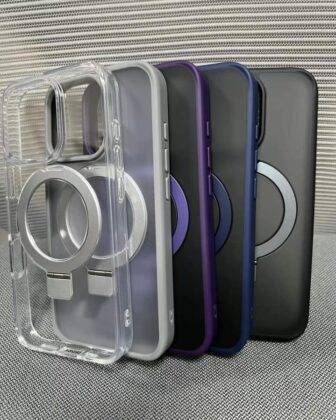 - There are five MagSafe charging cases here in transparent and black colours with white, purple, and blue borders.