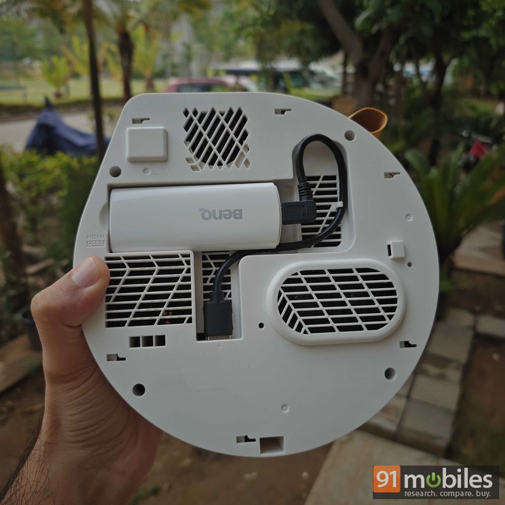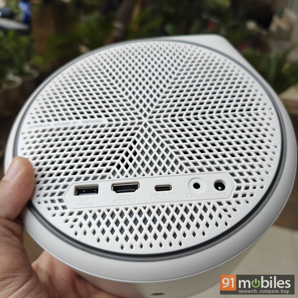 Much like the GV30, the GV31 also comes with a mesh design on both sides. Also, you can remove the right side cover to get access to the dedicated slot where you can either use the brand’s own streaming device (QS02) or you can even plug in an Amazon Fire TV stick. At the top, the projector comes with just four buttons – input, volume up/down, and power buttons.