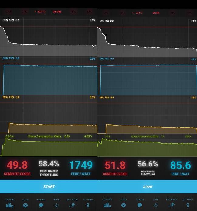 The Realme GT 6T wins this CPU Throttling test round. The handset’s performance dropped to approximately 58 percent in the Burnout test. In comparison, the POCO F6 experienced a 56.60 percent drop from its peak performance. As the difference is marginal, it might not be noticeable in real-world usage.