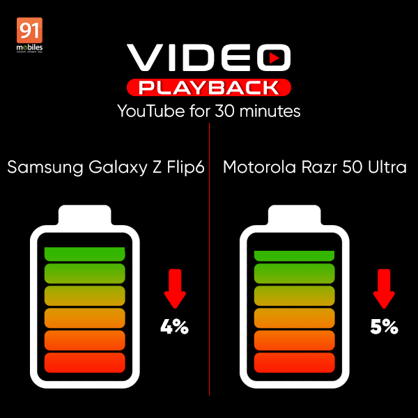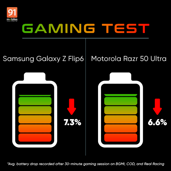 The post Samsung Galaxy Z Flip6 vs Motorola Razr 50 Ultra battery comparison: which flip phone offers better battery life? first appeared on 91mobiles.com.