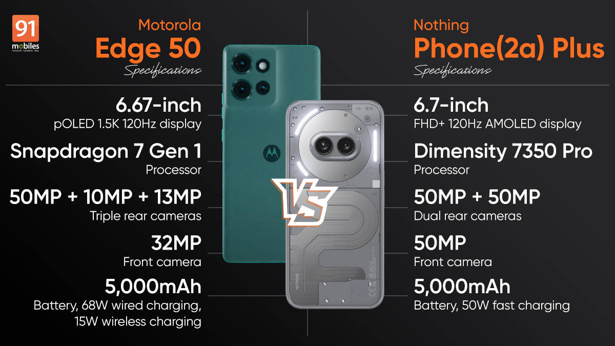 The post Comparing Motorola Edge 50 and Nothing Phone (2a) Plus: which phone offers better value for money under Rs 30,000? first appeared on 91mobiles.com.