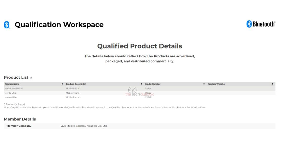 Vivo T3 Ultra has been spotted (by TheTechOutLook) on the Bluetooth SIG website with the V2426 model number. The phone with this model number was previously spotted on the GSMA/IMEI database. So, the phone’s inching close to its debut.
